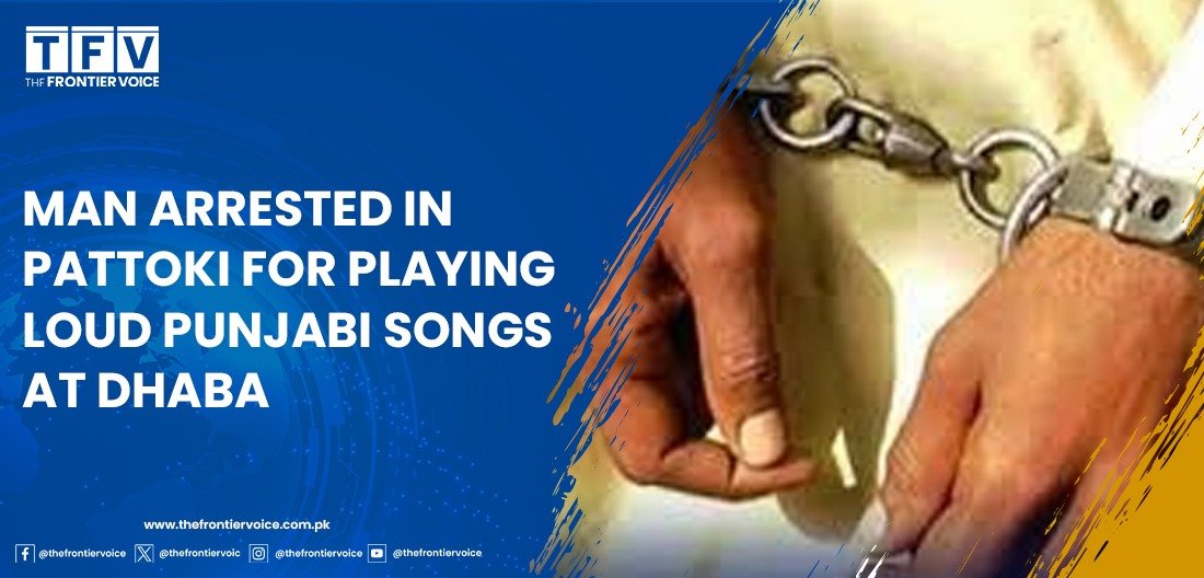 Police in Habibabad, Pattoki, arrested a man for playing Punjabi songs at high volume at a local dhaba, causing disturbance to nearby shopkeepers and residents.