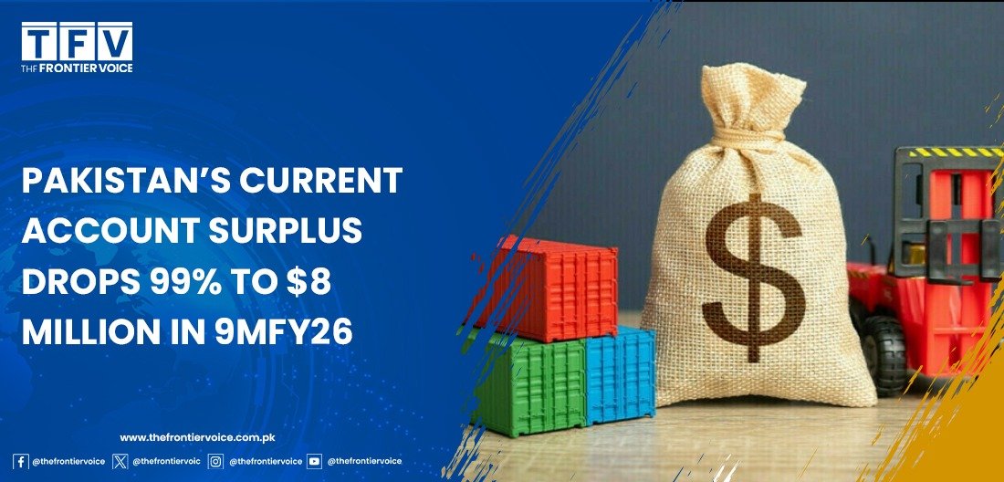 Pakistan’s current account surplus has sharply declined by approximately 99 percent to just $8 million during the first nine months of fiscal year 2026 (9MFY26), compared to $1,674 million recorded in the same period last year, according to data released by the State Bank of Pakistan (SBP).