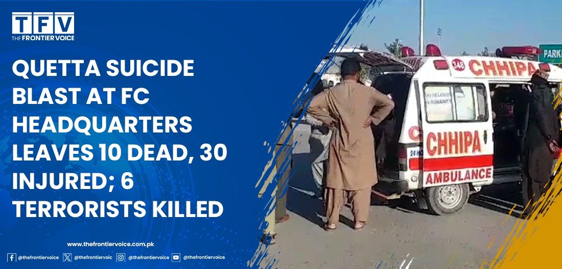 A suicide bombing rocked Quetta’s Model Town on Khujak Road, targeting the Frontier Corps (FC) Headquarters. According to initial reports, a suicide bomber rammed an explosives-laden vehicle into the main gate, causing a massive explosion that shattered windows and damaged nearby vehicles.